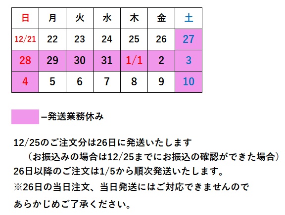 ※お振込みの場合は、お振込みの確認が取れてからの発送となります